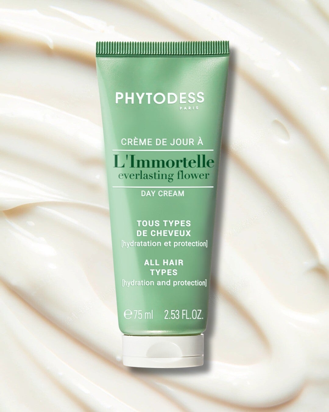 Luxe leave-in haarcrème met immortelle extract, speciaal ontwikkeld voor rijper, droog en verzwakt haar. Deze intens hydraterende dagverzorging helpt het haar te versterken, verbetert de elasticiteit en geeft direct meer glans, soepelheid en vitaliteit – zonder te verzwaren.
